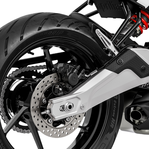 Le prestazioni di Aprilia RS 457 sono il risultato di soluzioni tecniche all’avanguardia e senza compromessi. Come l’adozione di un telaio in alluminio che sfrutta il motore come elemento portante. La forcella regolabile e l’impianto frenante completo di ABS a due canali con doppia mappa di utilizzo, assicurano sempre il massimo controllo.