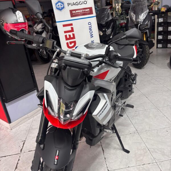 Il motore monocilindrico Euro 5 da 125cc di SRK 125 eroga una potenza di 15 CV (11Kw) e una coppia di 12 Nm il manubrio sportivo e la posizione ergonomica trasformano ogni curva nel tuo personale terreno di gioco. I dettagli sportivi tipici delle streetfighter – come il codino sfuggente e linee taglienti – incontrano l’avanguardia tecnologica di QJ Motor. Al look aggressivo si aggiunge il display TFT digitale che fornisce informazioni precise e immediate, e una presa di ricarica USB.