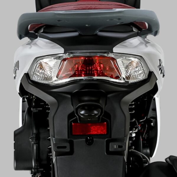 Il moderno faro anteriore a LED, con sviluppo orizzontale e design tecnologico, si integra perfettamente con il frontale, diventando un elemento distintivo che conferisce grinta a Piaggio Liberty S. Il suo effetto luminoso migliora la visibilità e completa l’esperienza di guida.